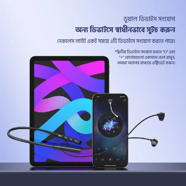 Designed with a flexible and lightweight neckband, the Necklace Lite sits comfortably around your neck, making it ideal for long hours of use at work, study, travel, or outdoor activities. The balanced sound tuning ensures clear vocals and smooth audio output, suitable for music streaming, YouTube, online classes, and voice calls.