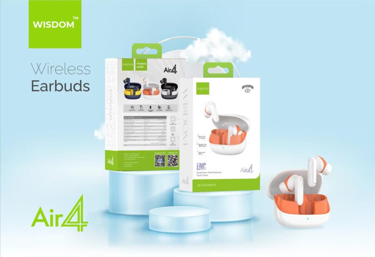 Enjoy premium sound with the Wisdom Air4 Wireless Earbuds – designed for crystal clear calling, powerful bass, and comfortable daily use.